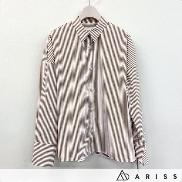 ARISS 万能シャツブラウス 242V3923 11 ベージュストライプ