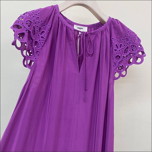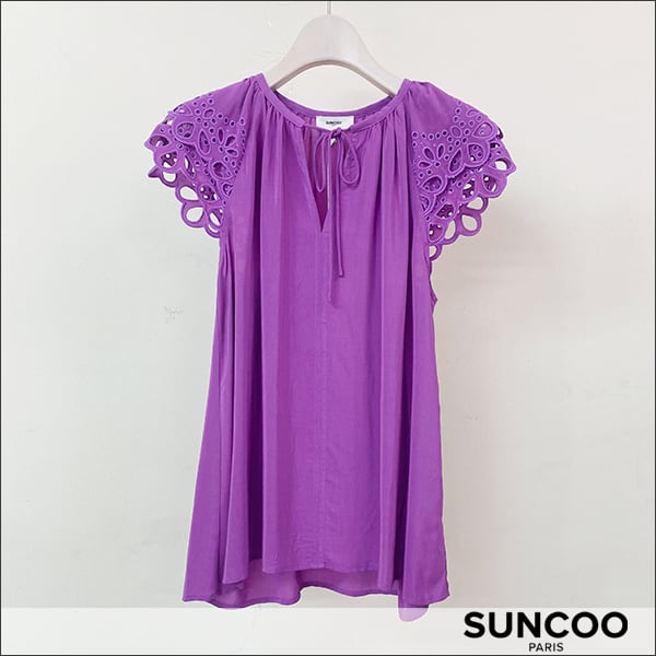 SUNCOO (サンクー) レース袖トップス BU07371 violet