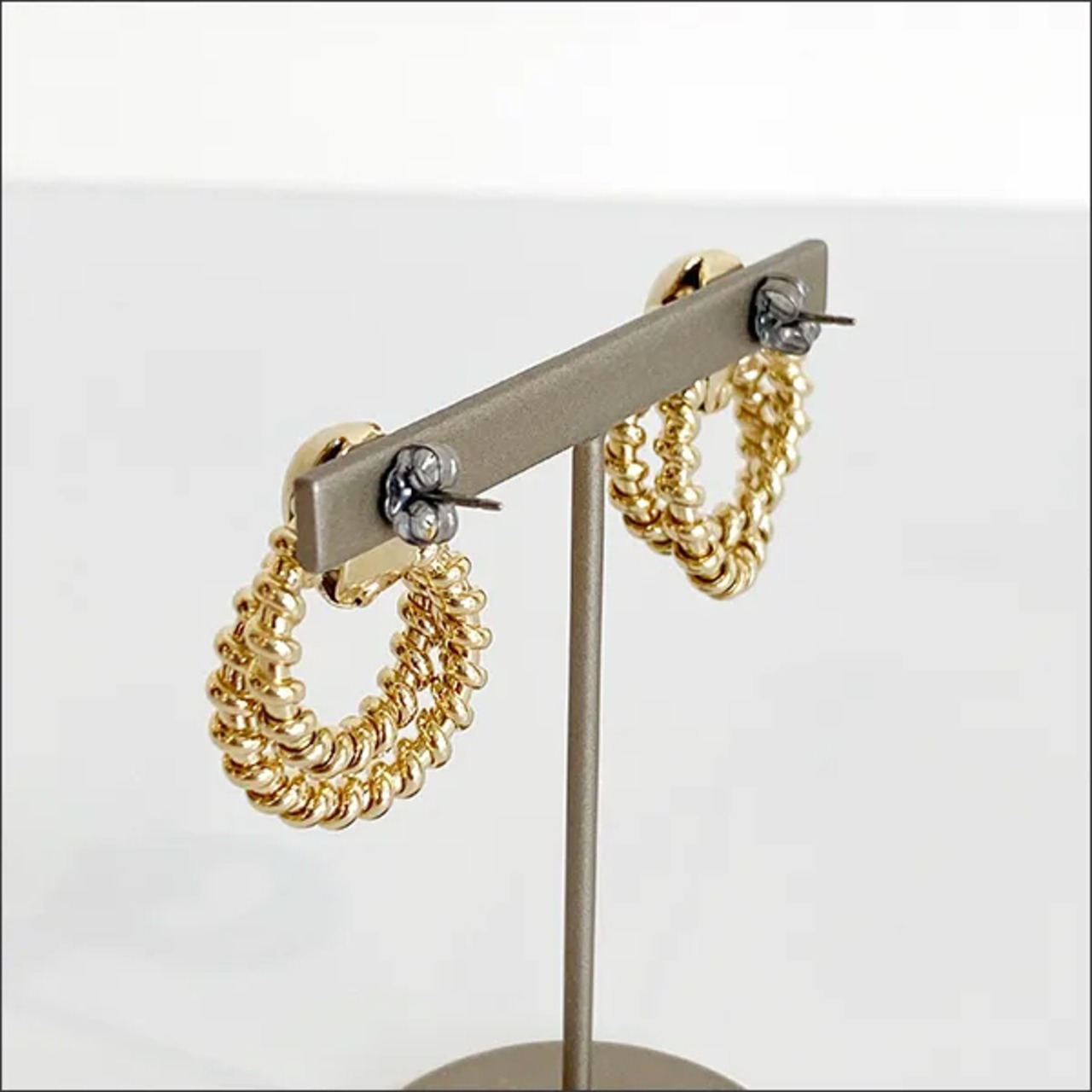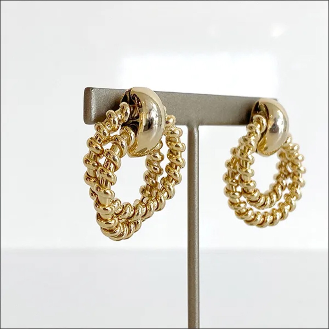 ツイストフープが二重になった立体的なピアス。