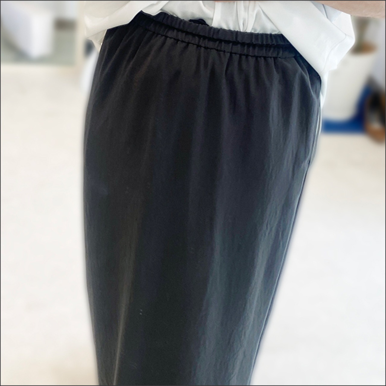 ウエストゴムの気軽に着られるタイトスカート。