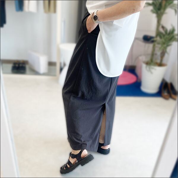 ジョーゼットの様な生地感に、後ろ裾のスリットで足捌きも良く使いやすさ抜群。