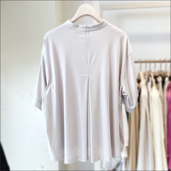 背面タックデザインの5分袖トップス。