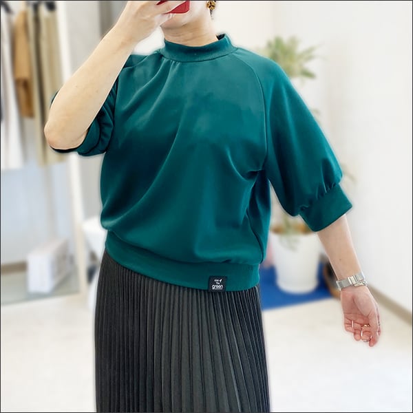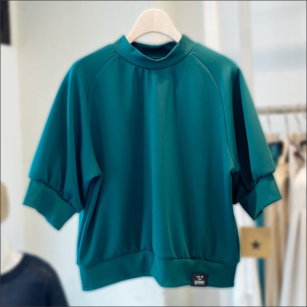 6分袖丈にちょっとした立ち襟がアクセントになったデザイン。