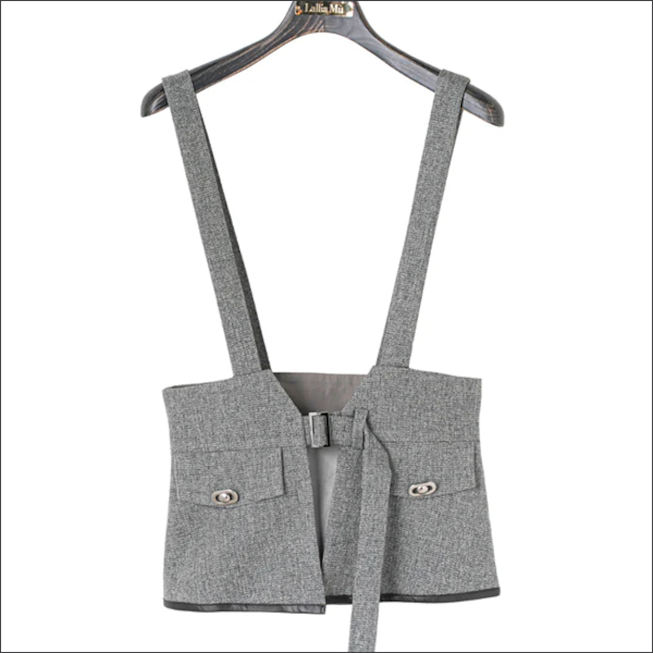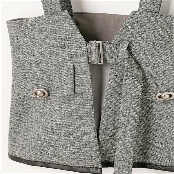 コルセットベルトには3段階の長さ調節が可能なショルダーベルト付き。