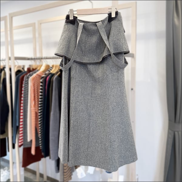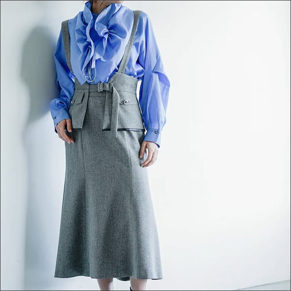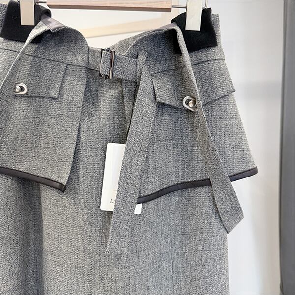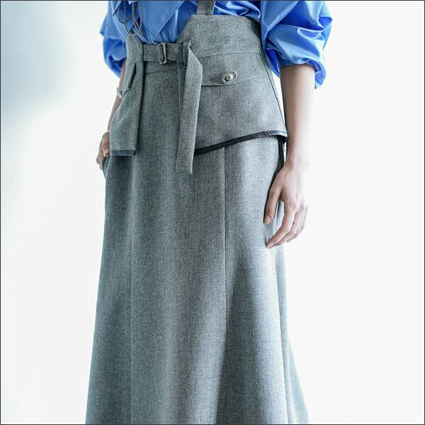 取り外し可能で、気分やシーンに合わせてシンプルなマーメイドスカートとしても着用でき、ベルト単体で他のボトムとのコーディネートも可能。