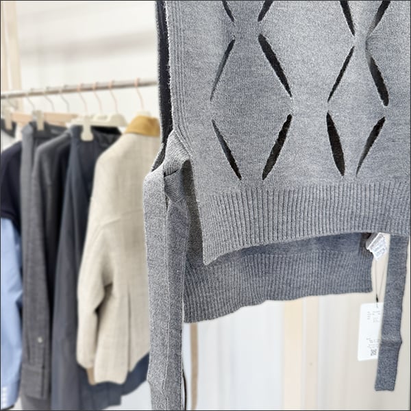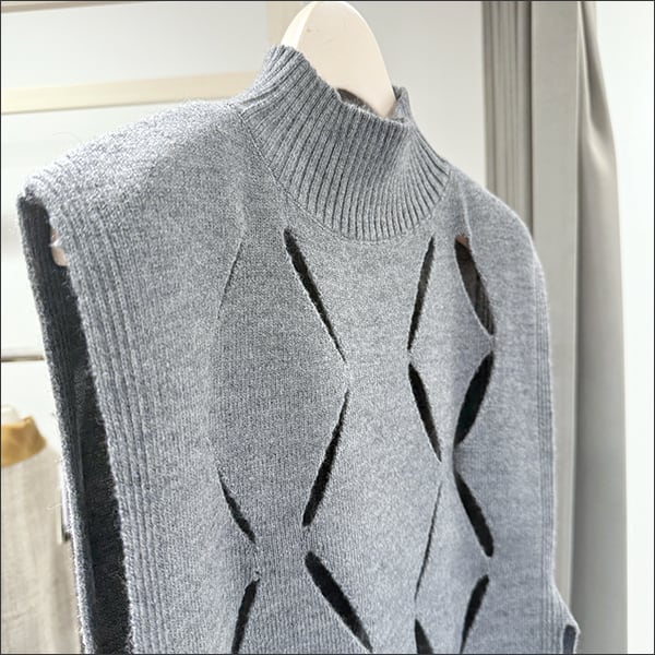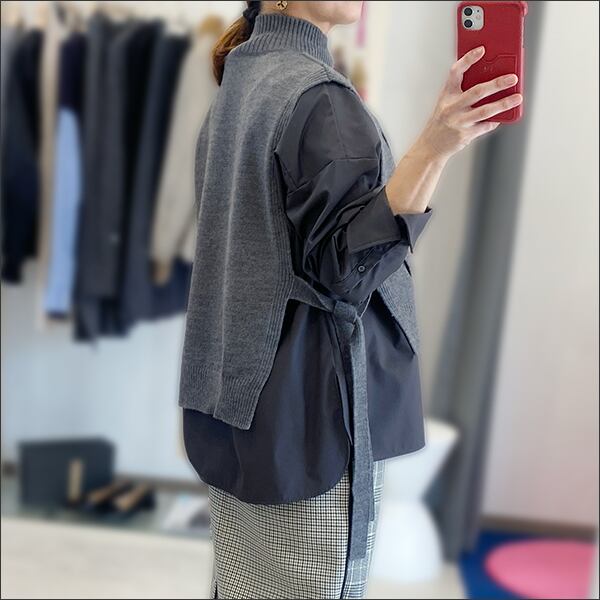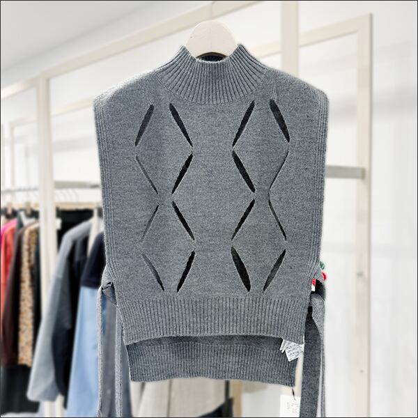シンプルながらも個性を放つニットベストはスタイルのアクセントになり、カジュアルながらも上品な印象を与える様々なシーンで映えるアイテムです。