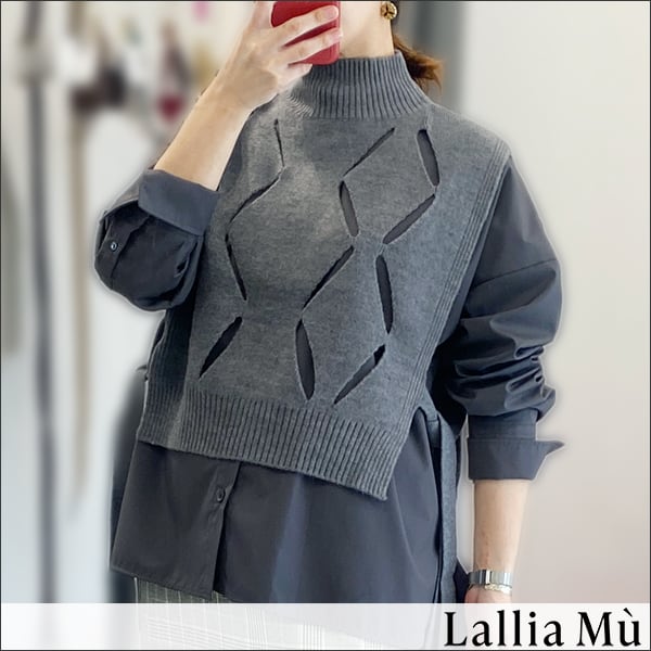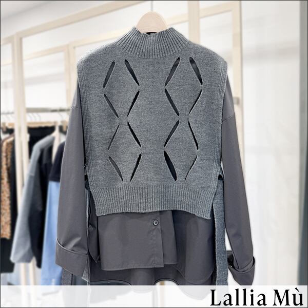 Lallia Mu (ラリアムー) ダイヤカットニットベスト 2513450 gray