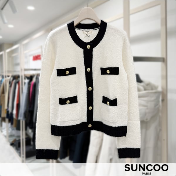 SUNCOO (サンクー) バイカラーカーディガン EU02182 white