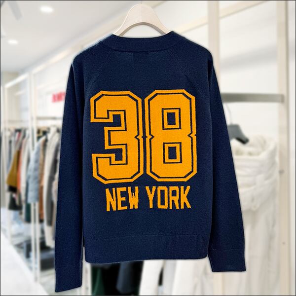 PLUS PLUS ジャガードバックナンバリングカシミヤニット「38」 562449 094