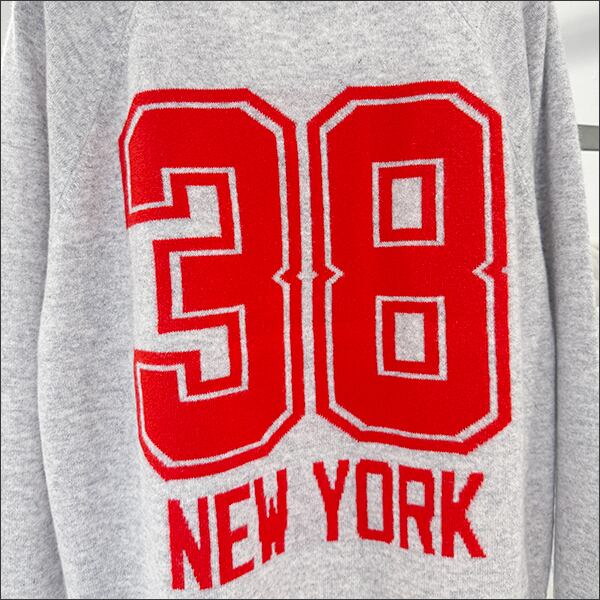 この商品は、ジャガード編みの技法を用いており、バックの『38』の印象の強い数字模様が特徴です。