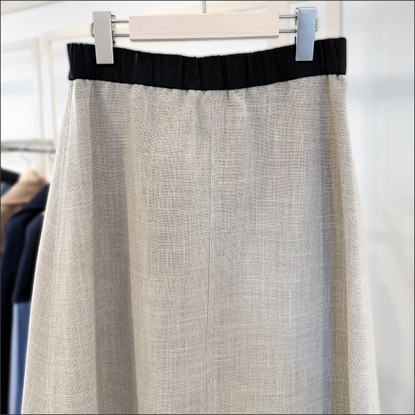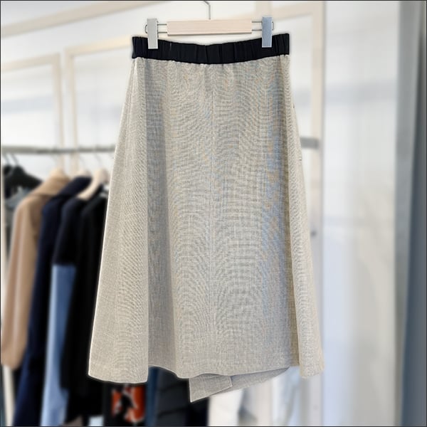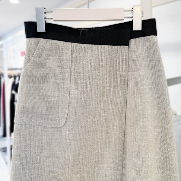 巻きスカート風のAラインスカート。