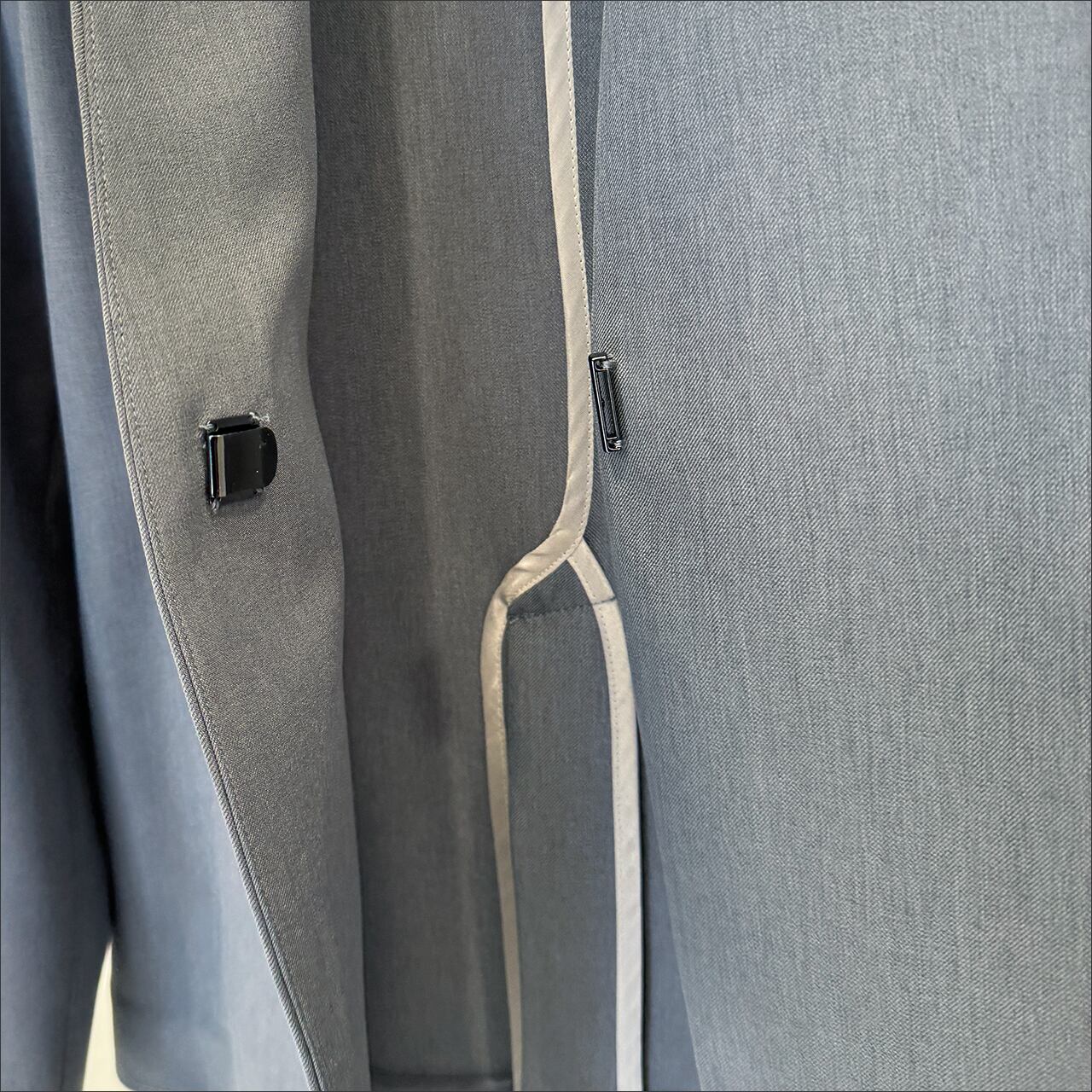 デコルテがすっきり見えるシャープなネックラインと、ウエストのなだらかなシェイプを損なわない縦ポケットにこだわりました。