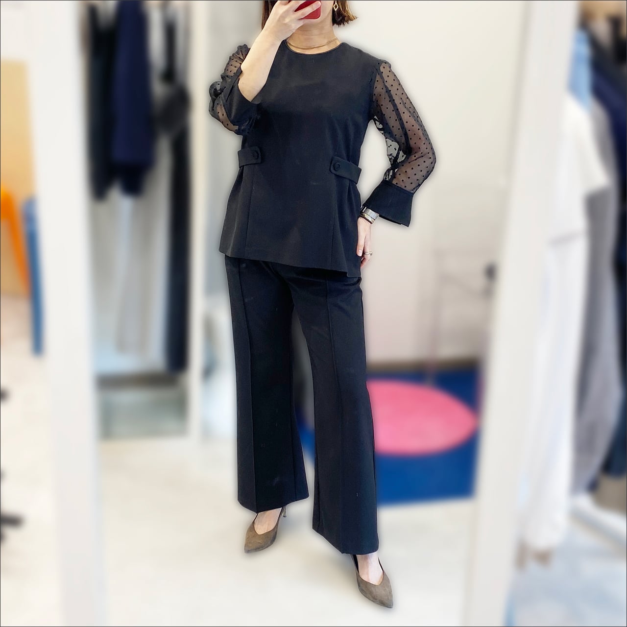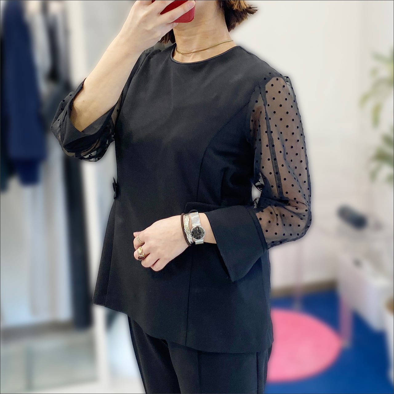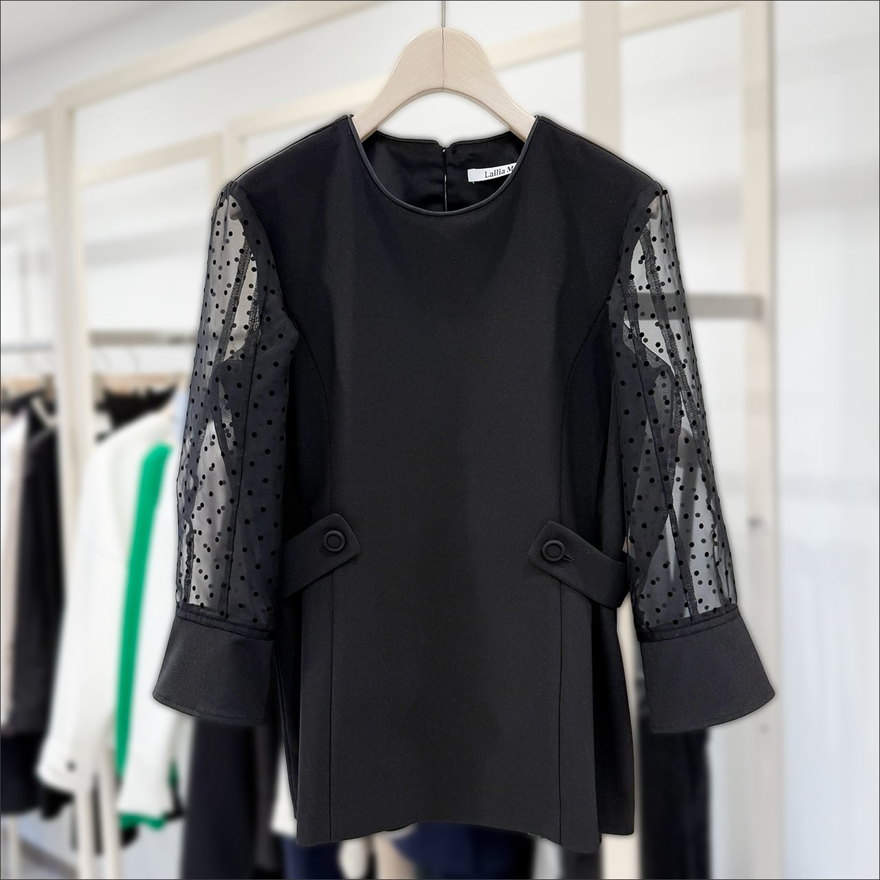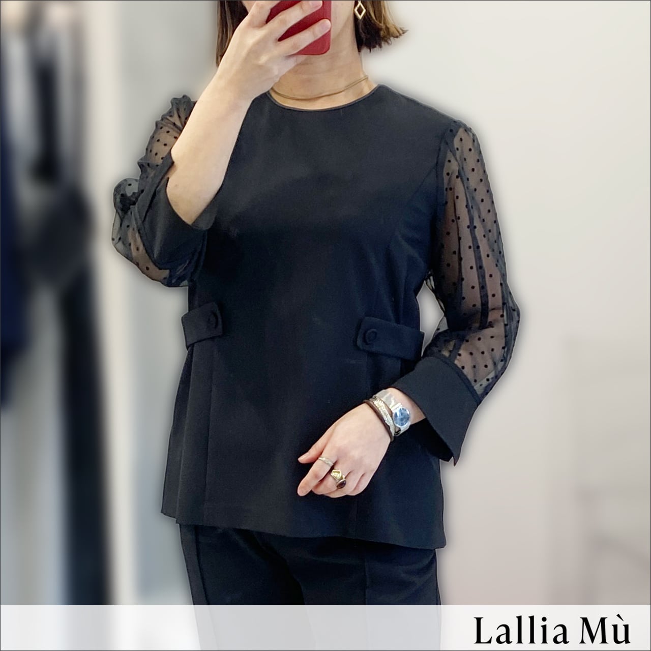Lallia Mu (ラリアムー) シアードットスリーブ ブラウス 2611632 Black
