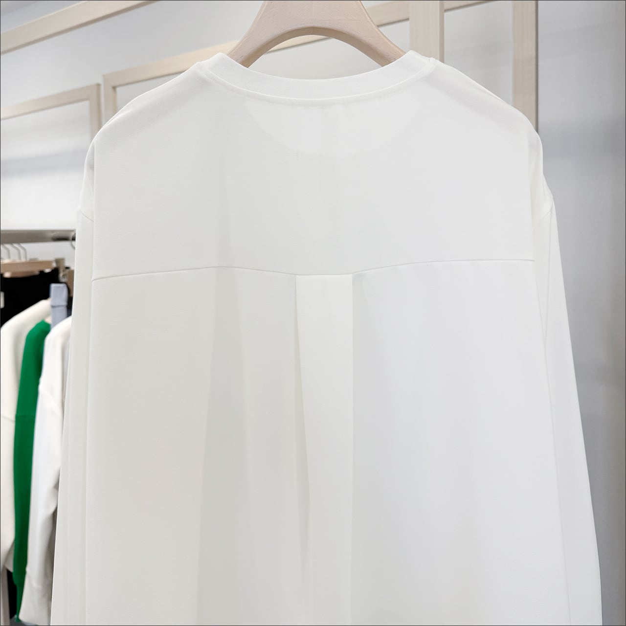 Tシャツとはちがう素材感と落ち感で、大人カジュアルの着回しには大活躍の一枚。