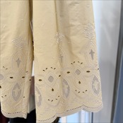 コーマ糸を使用した平織コットンにオリジナルのカットワーク刺繍を施した素材を使用。