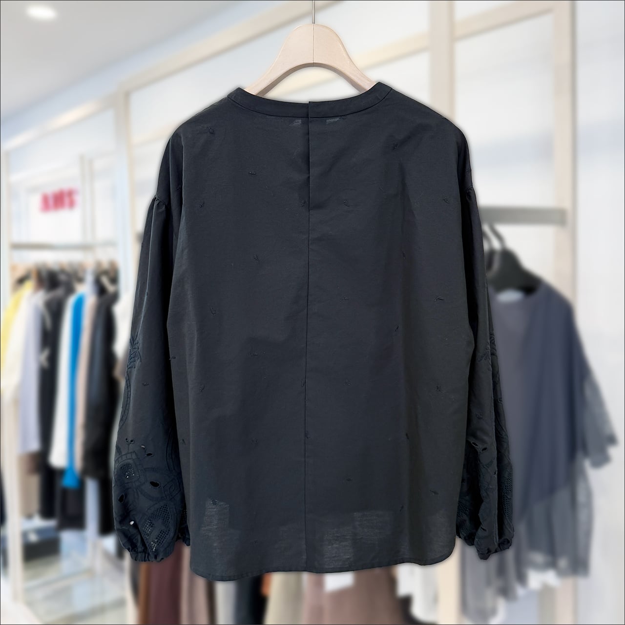 irise(イリゼ) ボリューム袖オリジナル刺繍ブラウス t9028 99.クロ