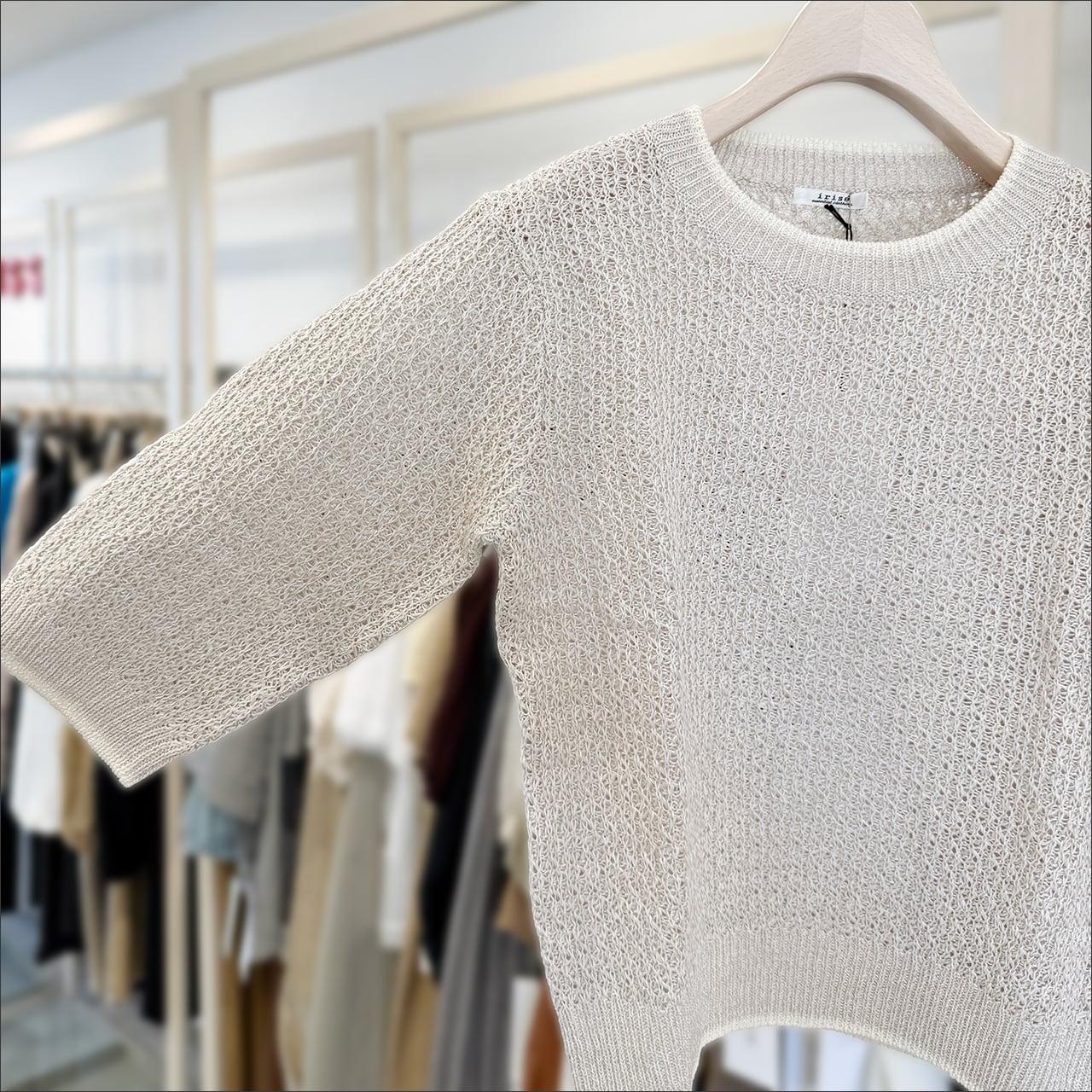 irise(イリゼ) 5分袖ニットプルオーバー t9037 80.ベージュ杢