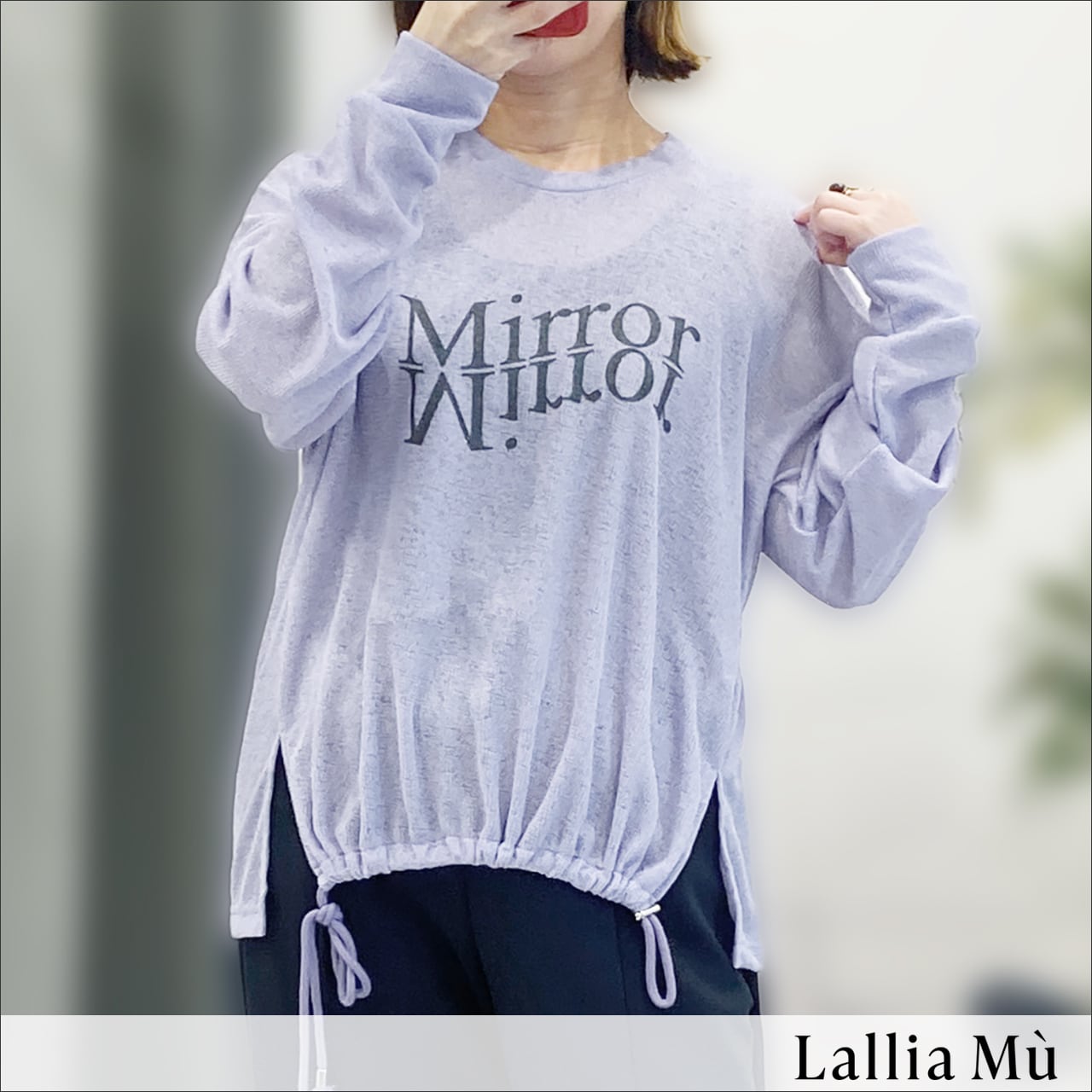 裾のドロストを絞ってシルエットに変化をつけることもでき、シアーアイテムも立体的なデザインがラリアムーらしいこだわりです。