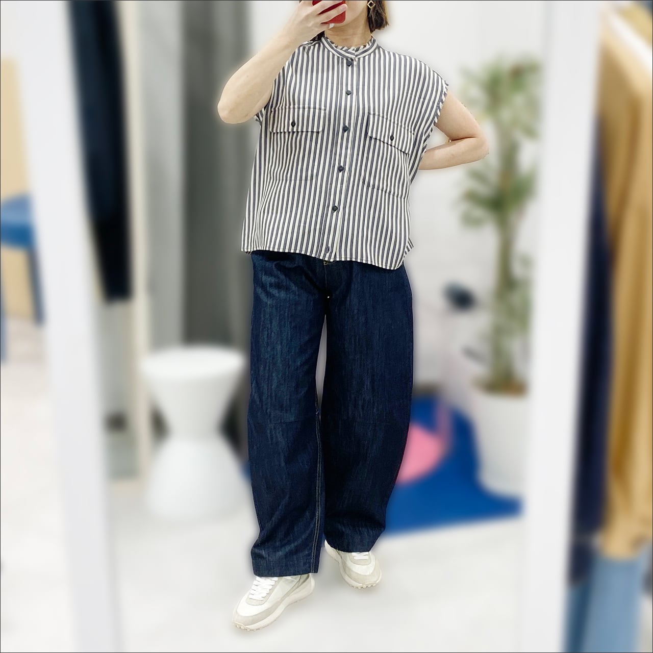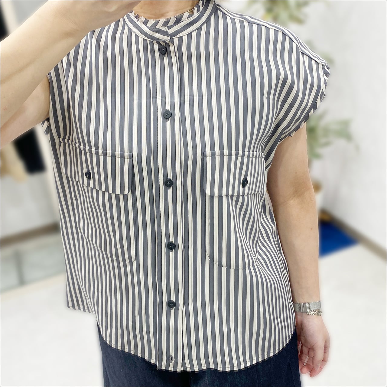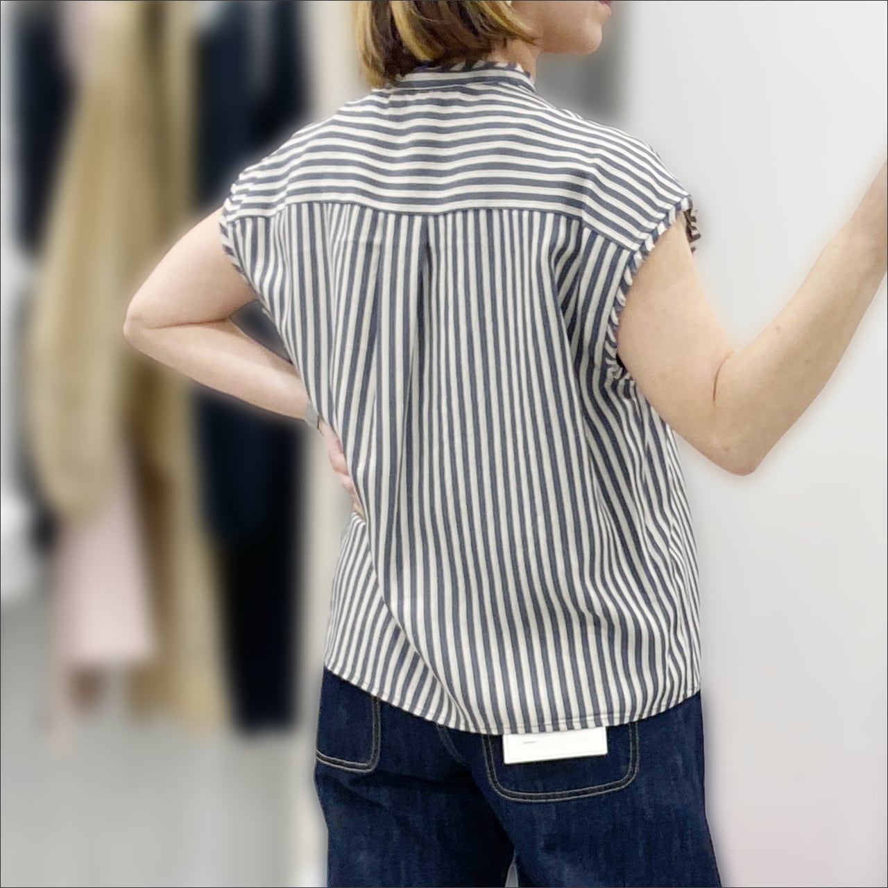 ノースリーブのストライプシャツ。