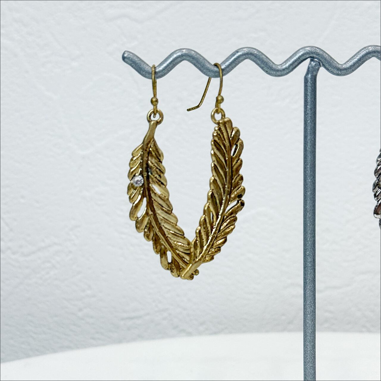 フェザーモチーフのピアス。