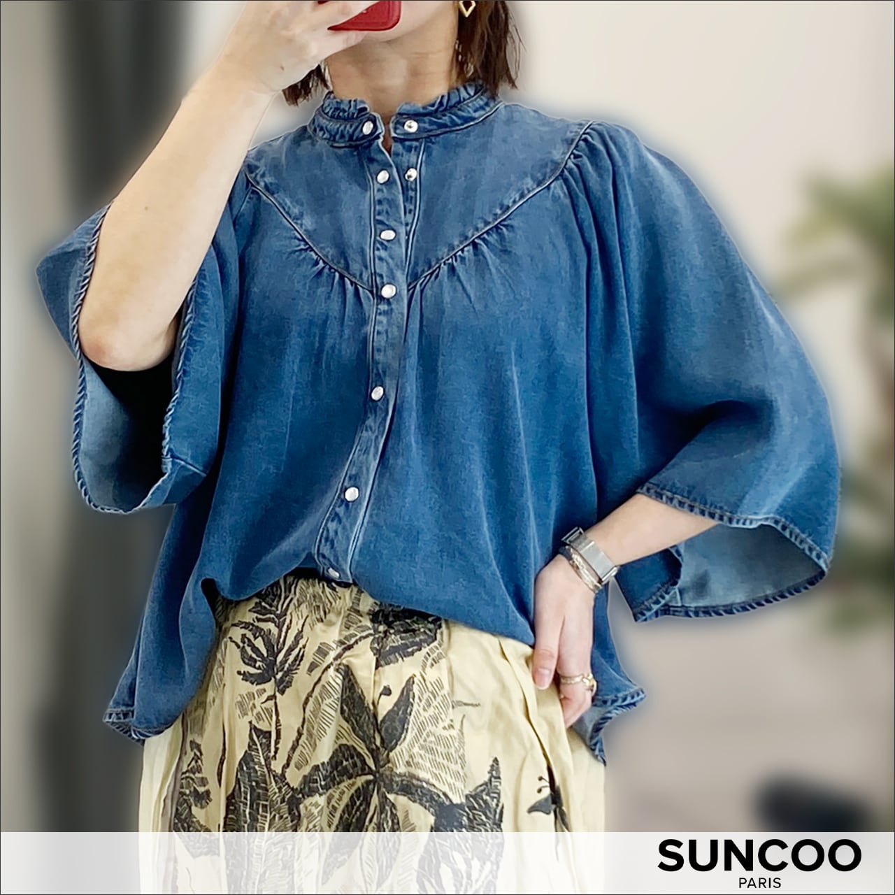 SUNCOO ボタンデニムブラウス SU07069 30.bleu