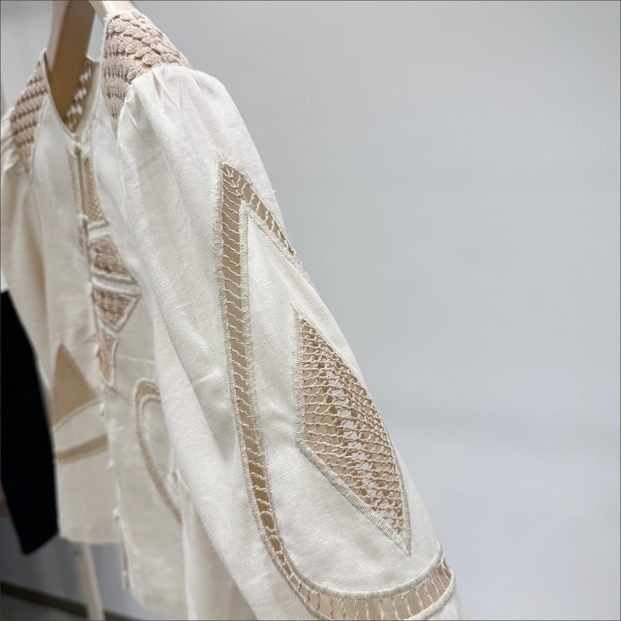 カッティングに、色々な刺繍レースが絶妙なデザインのブラウス。