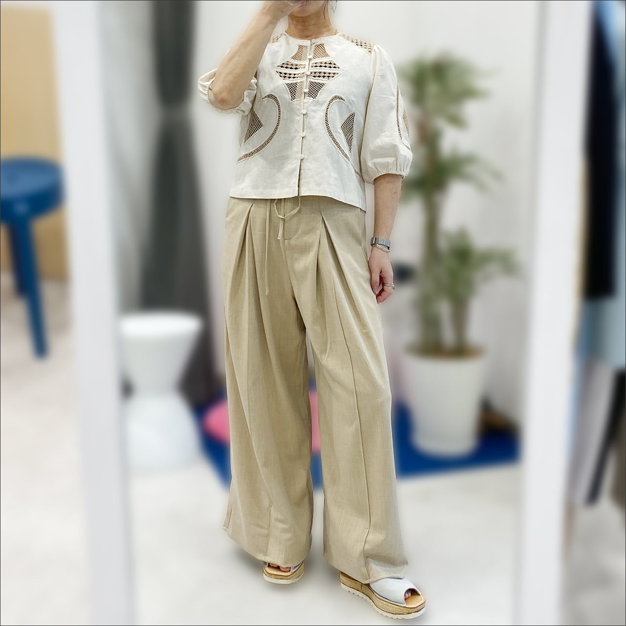 SUNCOO リネンコットン刺繍ブラウス SU07014 Beige