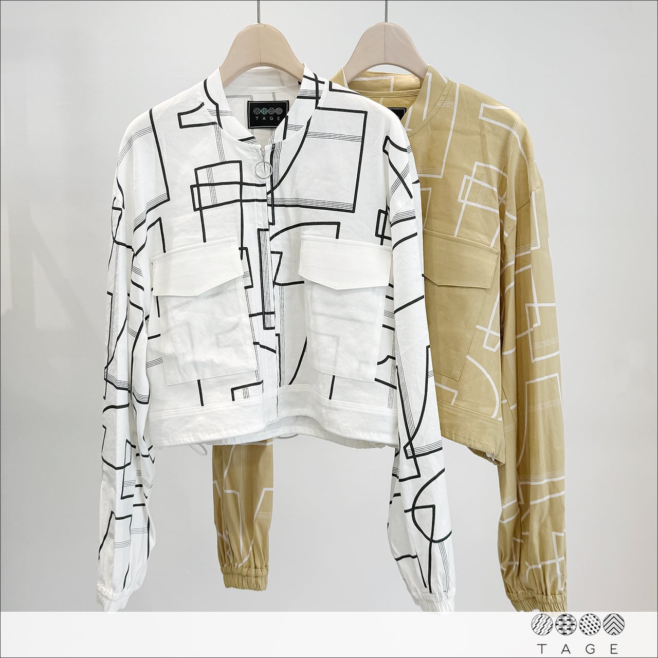 TAGE アートプリントショートブルゾン 2601-TGJK129 (スモーキーイエロー/ホワイト)