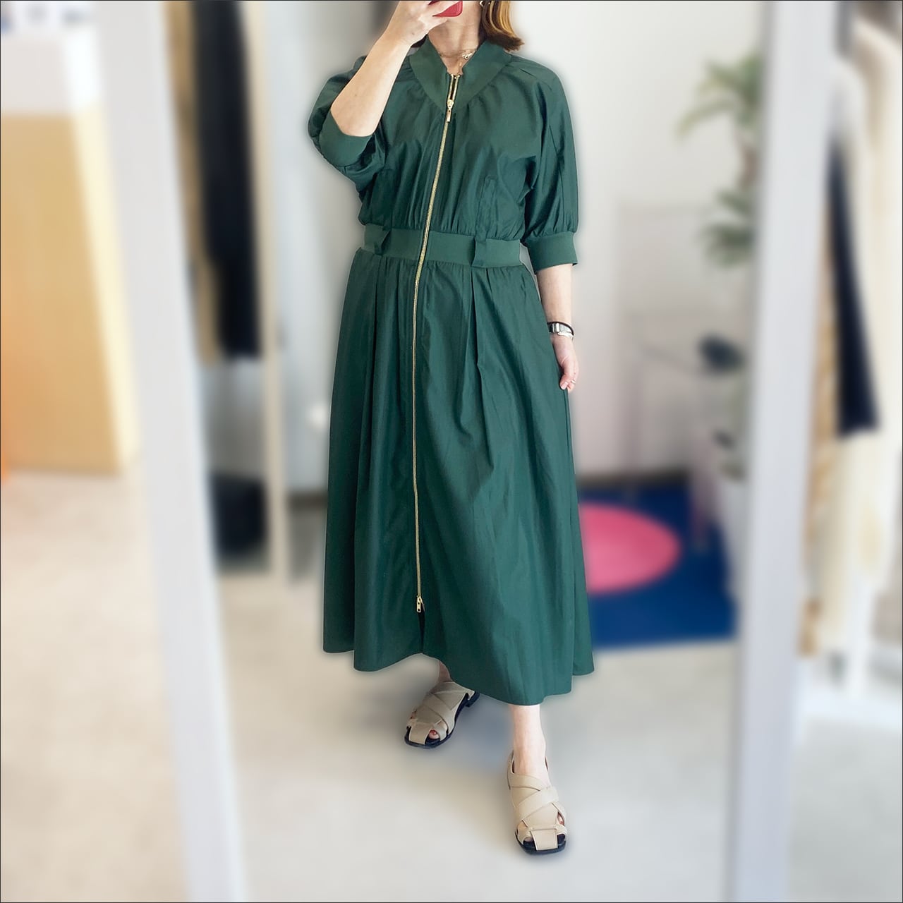 One of the green ジップアップワンピース 21C1667 グリーン/ブラック