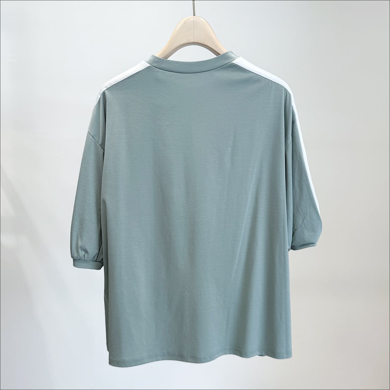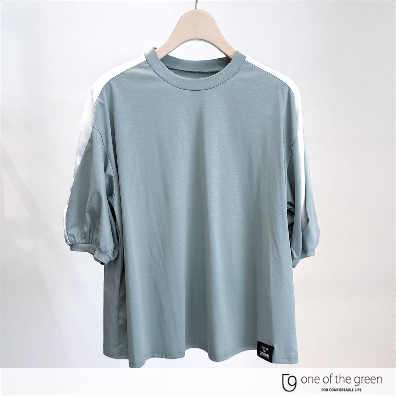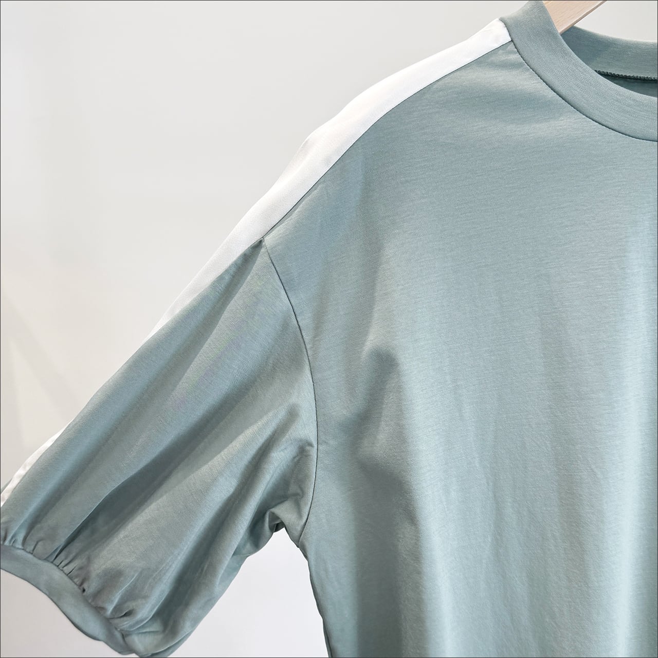 One of the green 袖アクセントクルネックトップス 21C1646 ブルーグリーン