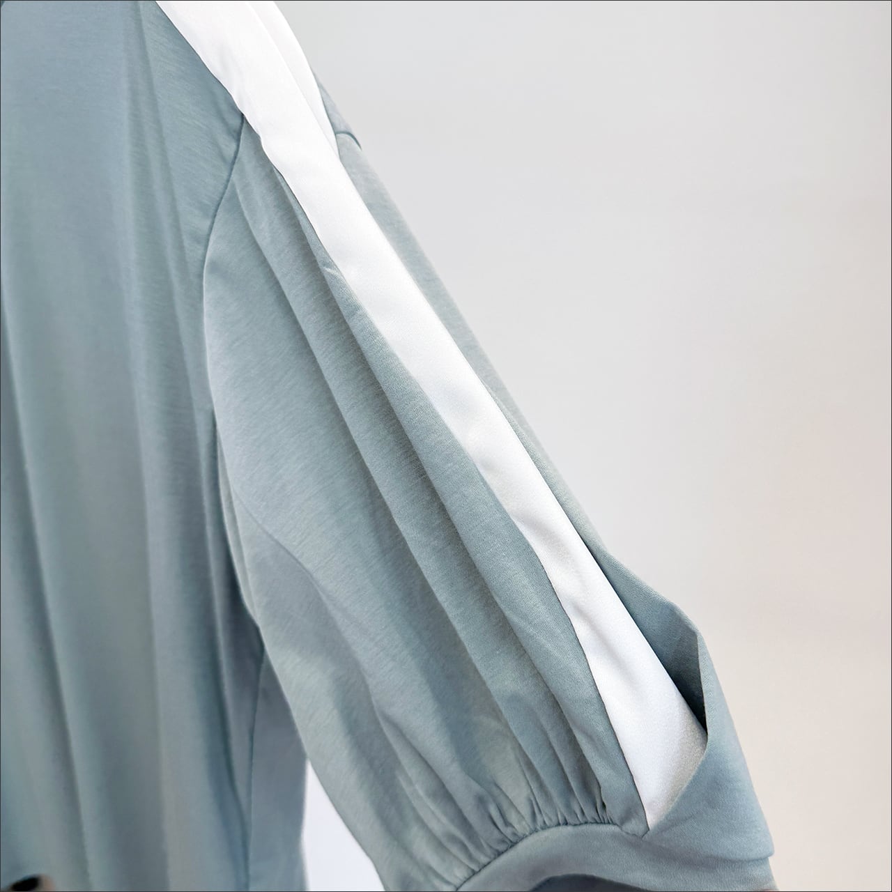 肩からのサイドラインをアクセントに、袖口にかけてのデザインがポイントになっています。
